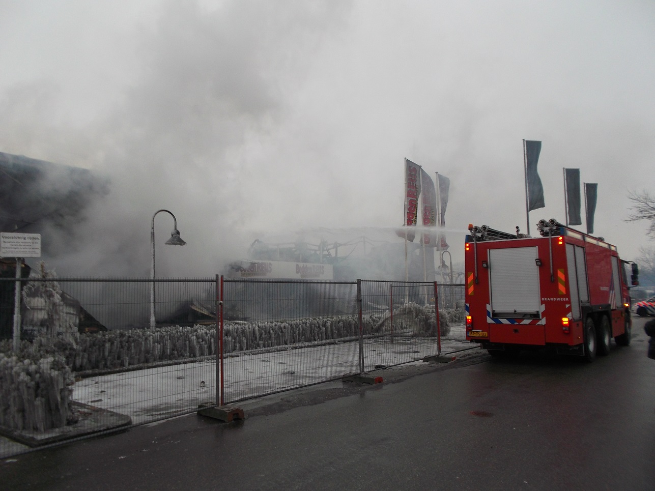 Volgens eigenaar Nijland is dat afhankelijk van mede-eigenaar Groengoed BV. Het pand van 50 bij 200 meter is op oudjaarsdag volledig door brand verwoest. De oorzaak van de brand is nog niet achterhaald. Het technisch onderzoek heeft niets opgeleverd. Volgens Nijland is wel duidelijk dat de brand niet in zijn deel van het pand is ontstaan. Hij heeft het goed verzekerd en verwacht dat de schade wordt vergoed. Over de omvang van de schade kan hij nog niks zeggen. "Het is total loss en mijn deel zag er goed uit, deze week is er een gesprek met de verzekeraar en de mede-eigenaar"