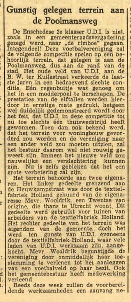 Poolmansweg voetbalveld UDI krantenbericht Tubantia 21-3-1951..jpg
