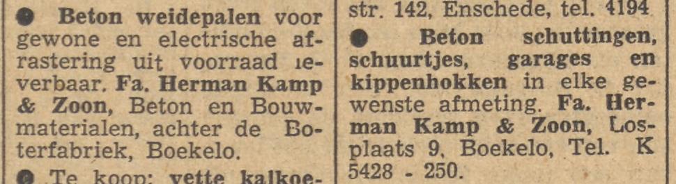 Losplaats 9 Boekelo Fa. Herman Kamp & Zoon advertentie Tubantia 11-12-1954.jpg