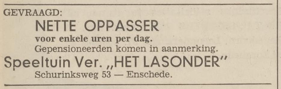 Aan de Schurinksweg hoek Roomweg is in 1938 de speeltuin Het Lasonder geopend volgens krantenbericht Tubantia 8-8-1938.