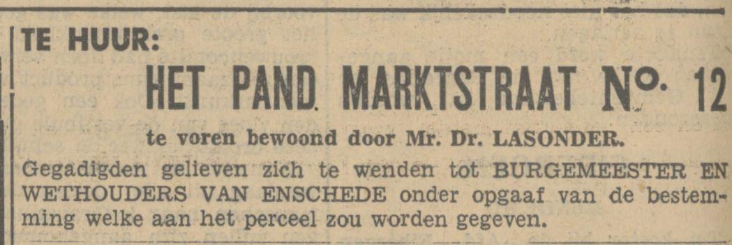 Wel heeft Mr. Dr. G.A. Lasonder gewoond aan de Marktstraat 12 (hoek Noorderhagen) volgens onderstaande krantenberichten en ook volgens het artikel in .n Sliepsteen nr. 13 jaar 1997 op: http://cultuurtijdschriften.nl/download ... cid=512913