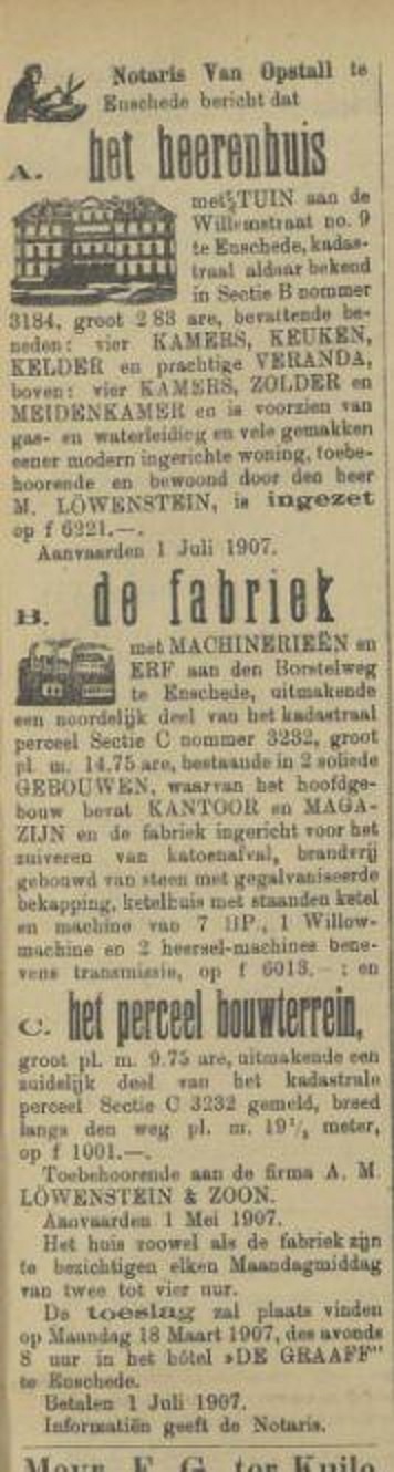 De Firma A. Leering is in 1845 opgericht en bestaat nog steeds (nu aan de Kanaalstraat 151). zie: https://www.leering-enschede.nl/over-le ... fsprofiel/