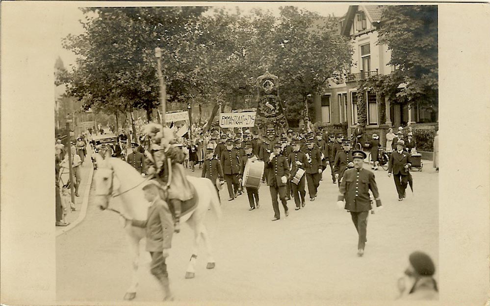 Het is inderdaad bij het vm Memphis Hotel, n.l. de M.H. Tromplaan hoek Stadsmatenstraat bij de ingang van het Volkspark. De optocht heeft waarschijnlijk met de Koninginnedag te maken. Vroeger was dat de Rembrandtlaan. zie ook: http://www.onbekendinnederland.nl/oplos ... index.html