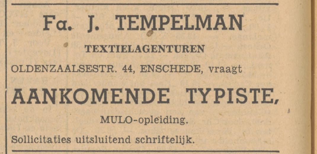 Tempelman, J. Handelsagent, Kantoor, Oldenzaalsestraat 44
