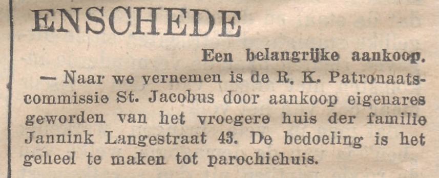 Langestraat 43 Parochiehuis St. Jacobus krantenbericht Overijsselsch dagblad 21-2-1933.jpg