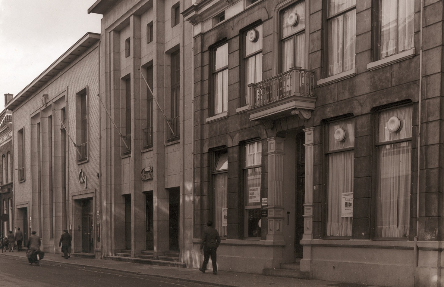 Langestraat 41, 43 en 45-47 Grote Societeit met bogen en  Twentsche Schouwburg  1953.jpg