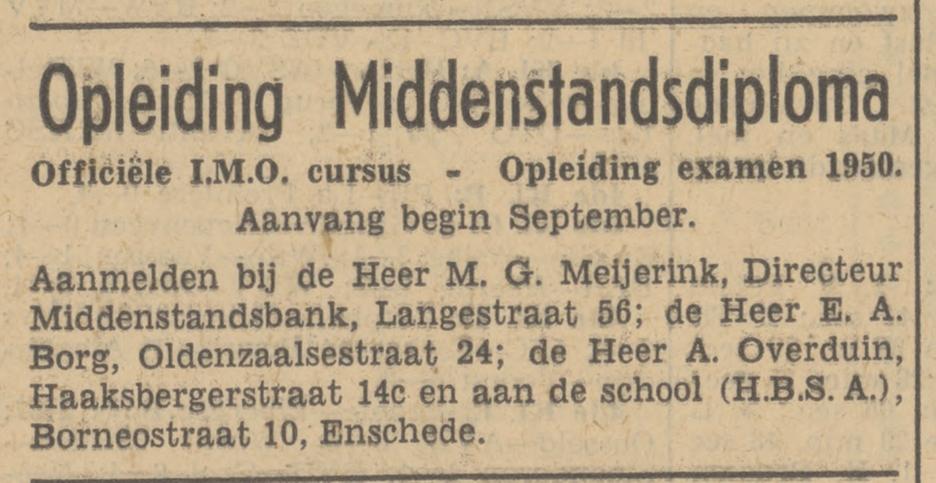 Meijerink M.G. directeur Middenstands Bank Langestraat 56 advertentie 5-9-1949