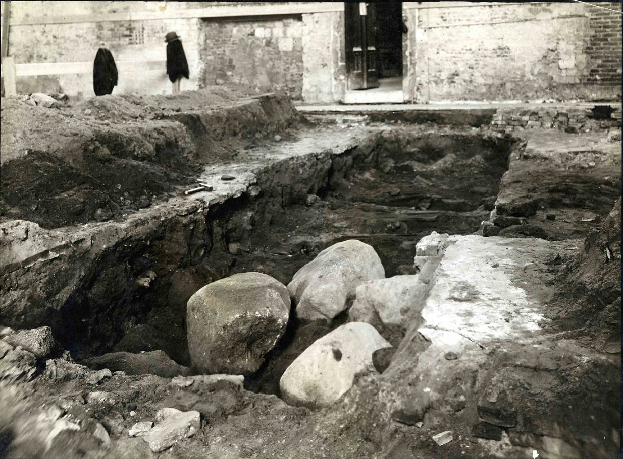 Markt Vondst van een groot aantal veldkeien en een begraafplaats bij de restauratie van de N.H. Grote Kerk op de Oude Markt 23-12-1928 (4).jpg