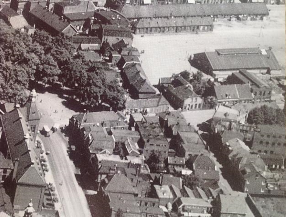 Op deze luchtfoto van de vroegere C.F. Klaarstraat (nu Boulevard) van 1932 staat rechts op het vroegere van Heekplein een gebouw afgebeeld, wat op een boerderij lijkt. Weet iemand welk gebouw dit is geweest? Misschien op oude plattegronden te achterhalen?