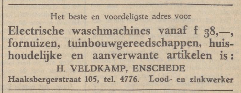 Veldkamp, H. Lood-en zinkw., Haaksbergerstraat 105