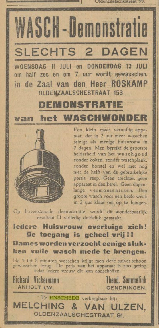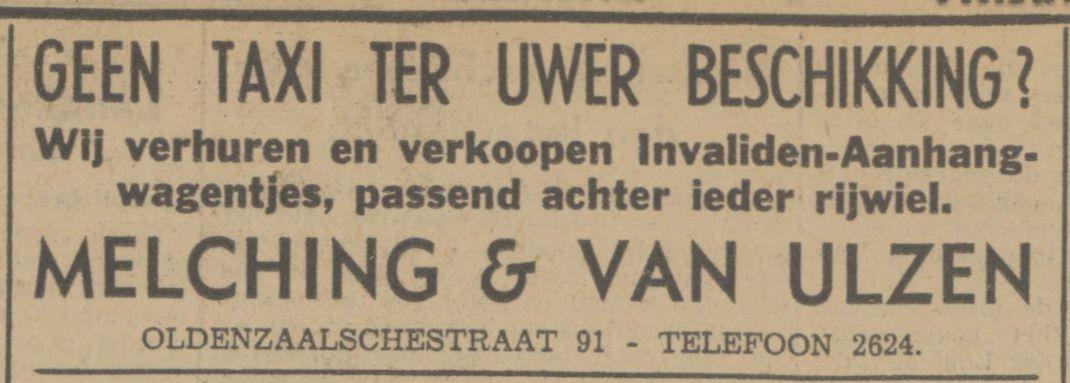 Melching & van Ulzen, Rijwielhandel, Oldenzaalschestraat 91.