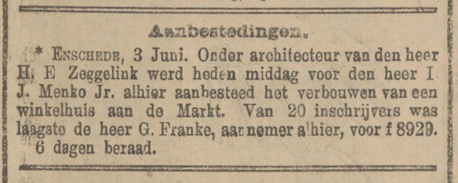 Menko, Jr., Isidoor J., Magazijn "de Zon", Markt 20.