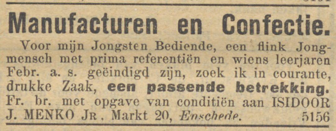 Menko, Szn, I., Fabrikant, Oldenzaalschestraat 10.
