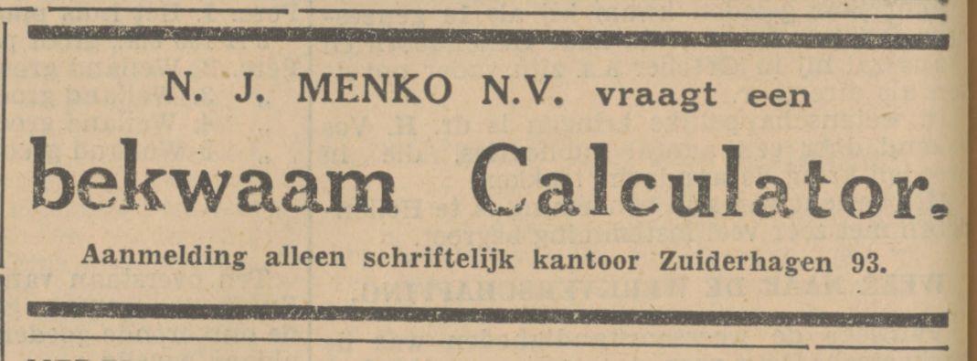 Menko, N.J., Kantoor, Zuiderhagen 93.