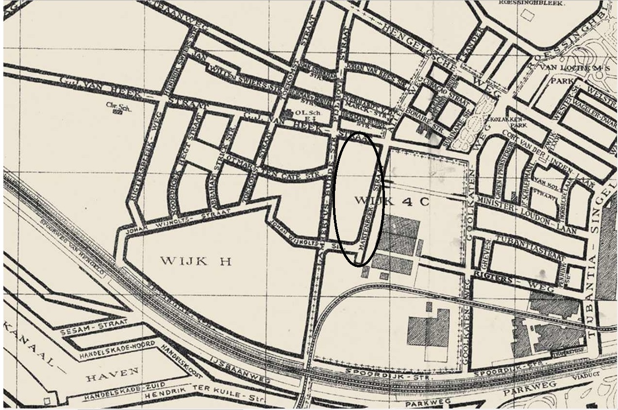 De vroegere Vorstmanstraat liep van de Dr. Kostersstraat z.w.-waarts tot de Bloemendaalstraat.