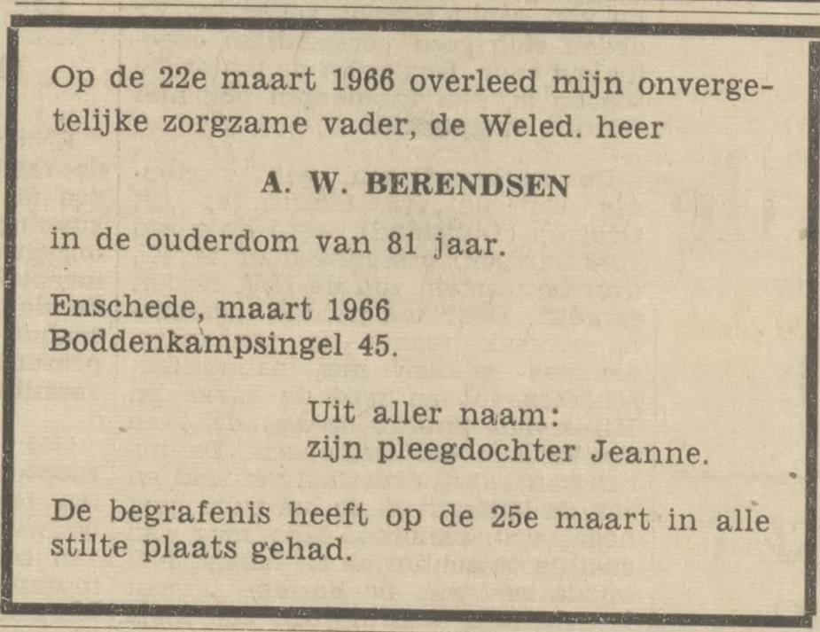 Boddenkampsingel 45 A.W. Berendsen overlijdensadvertentie Tubantia 30-3-1966.jpg