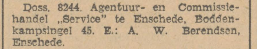 Berendsen A.W. bedrijfsleider Boddenkampsingel 45 krantenbericht 28-1-1931 en advertentie 30-3-1966