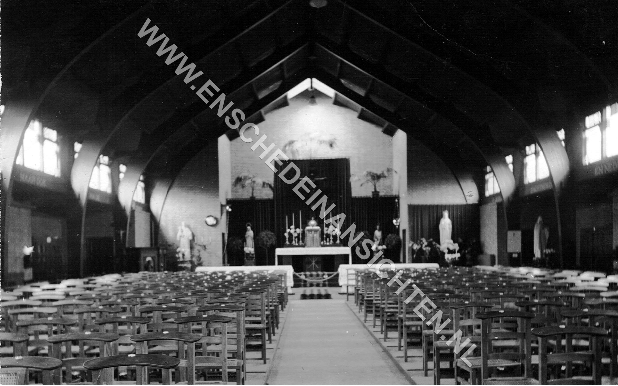 Hendrik ik heb laatst een kaart gekocht en wist niet precies wat het was maar dat wordt nu wel duidelijk.Hendrik schreef:Nee ik ken dat gebouw niet als kerk, maar ik kan me nog herinneren dat de laatste hand gelegd werd aan de Ariens gedachteniskerk aan de Hogelandsingel. Men was toen op het kerkplein bezig met soldeerwerk aan grote orgelpijpen. Vermoedelijk Vermeulen orgelbouw uit Weert. Ik liep toen elke dag vanaf de Semarangstraat nnaar de 1e School met de Bijbel (later De Fontein) aan de Tegelerweg. Dat was nog in de tijd dat protestanten als het zo te pas kwam door Rooms Katholieken ketters genoemd werden. Niet dat wij als gereformeerden bij zo'n scheldwoord onze mond hielden. Wij hadden het over roomse papen.
