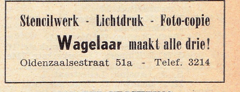 3214 Wagelaar, E.A. Type-, copieer.- en lichtdrukinr. Oldenzaalsestraat 51a