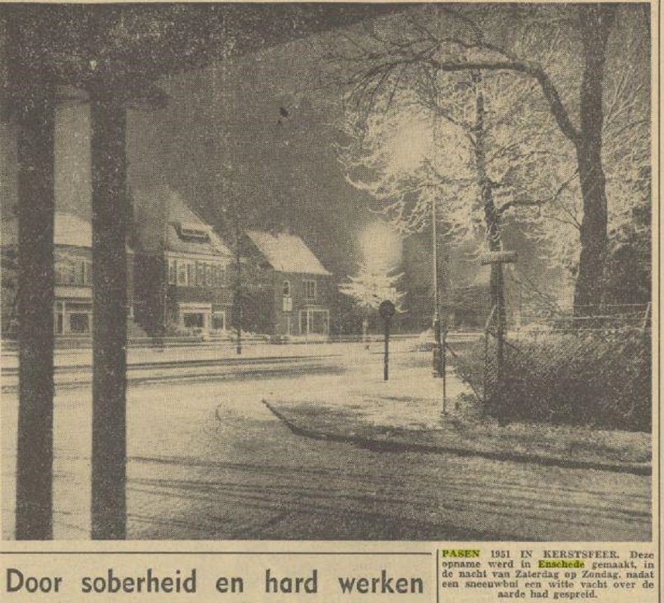 Ik hoop toch op warmer weer met de Paasdagen dit jaar. We hebben in het verleden wel eens vaker sneeuw tijdens de Paasdagen gehad. Zo was er in 1951 ook Pasen in Kerstsfeer aan de Hengelosestraat volgens deze krantenfoto uit de Tubantia van 27-3-1951.