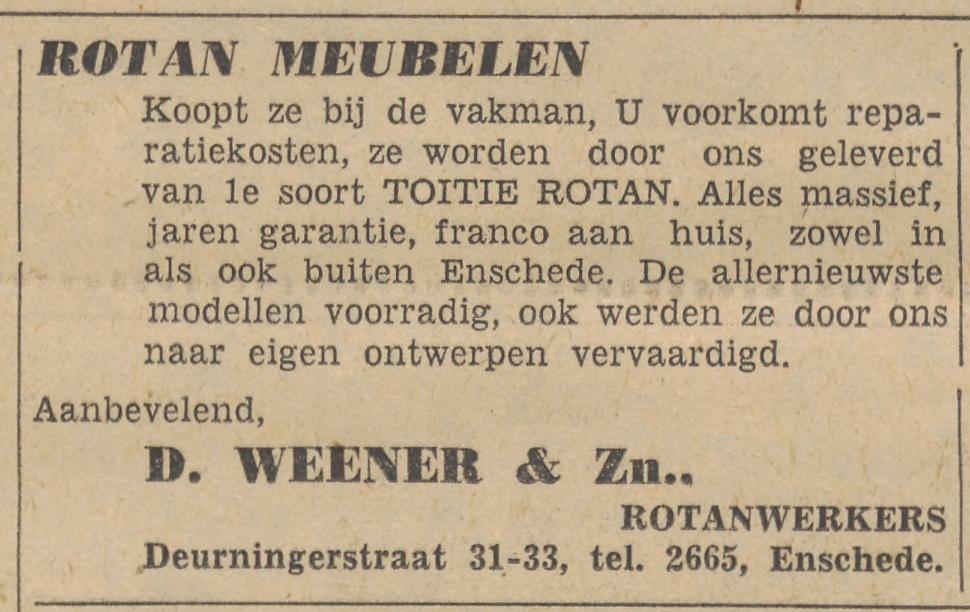 2665 Weener & Zn., D. Rietmeubelen en mandenmaker. Deurningerstraat 31