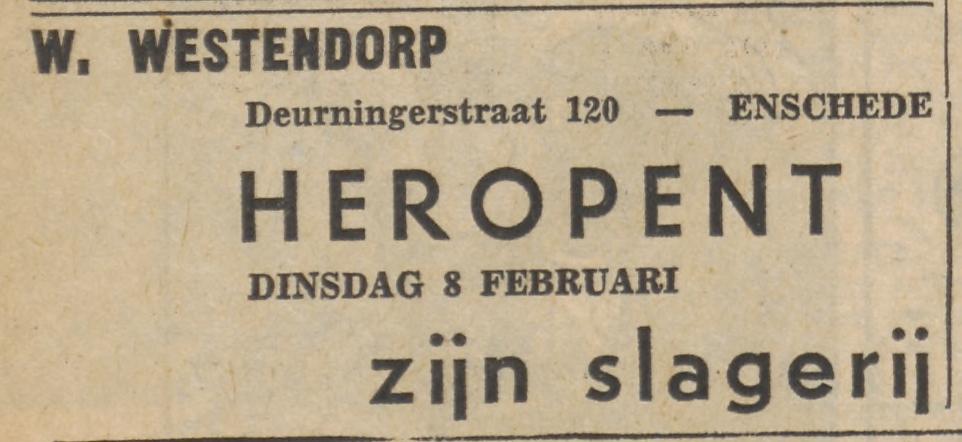 Westendorp, W. Slagerij. Deurningerstraat 120