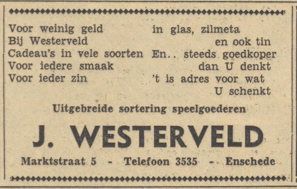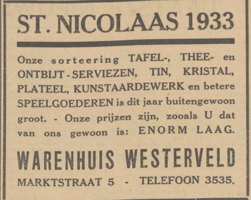 3535 Westerveld, J.H. Porcelein en aardewerk enz. Marktstraat 5