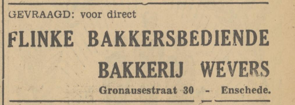 Wevers, A.G. Brood- en banketbakker. Gronauschestraat 30