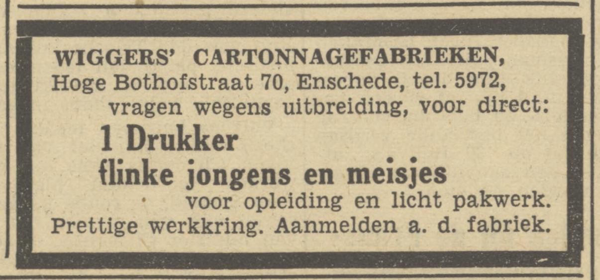 5972 Wiggers, J.H. Cartonnagefabriek en drukkerij. Hoge Bothofstraat 70