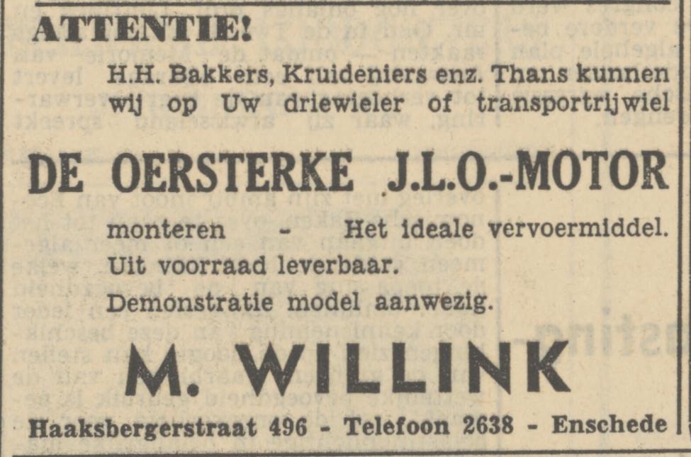 2638 Willink, M. Rijwiel- en motorhandel. Haaksbergerstraat 496