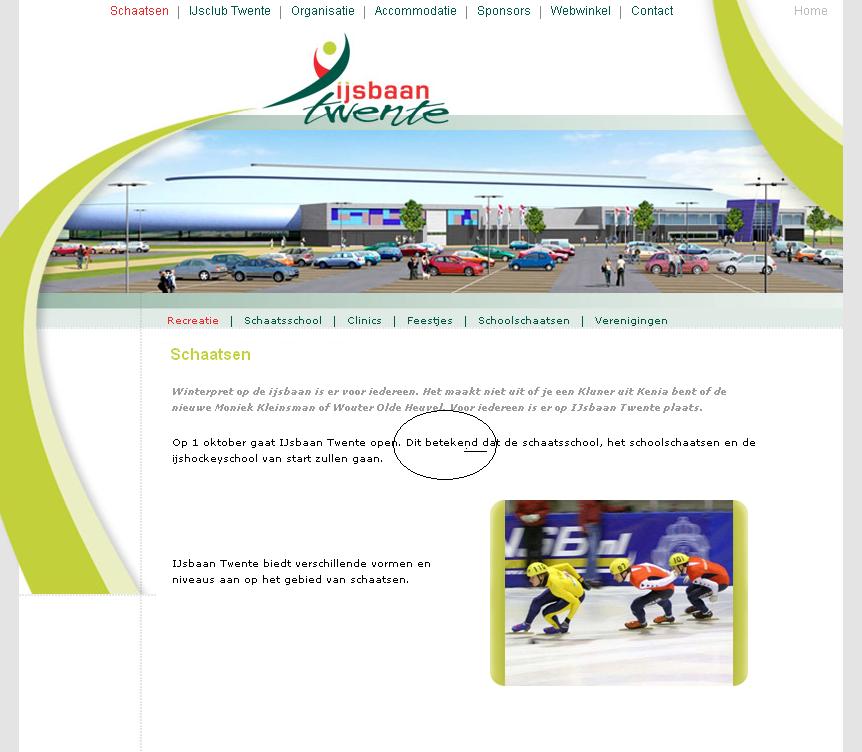 Internetsite is sinds een week of 3 ijsbaantwente.nl ipv .com