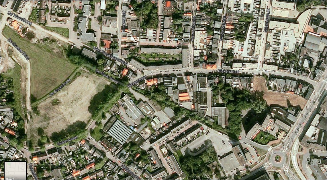 Volgens mij is het de achterkant van één van de bedrijven die vroeger vanaf de Blekerstraat toegankelijk waren.
