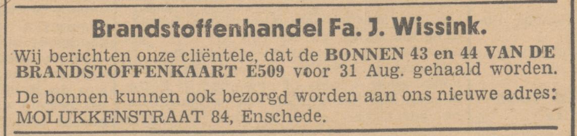 5176 Wissink, J. Brandstofhandel. Molukkenstraat 84