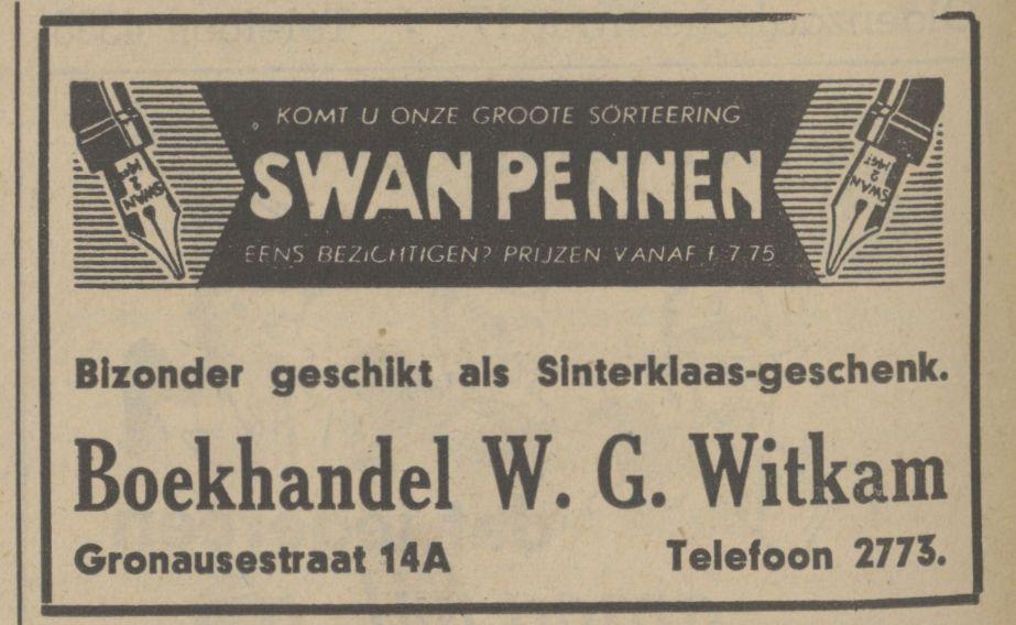 2773 Witkam, W.G. Alg., techn. en schoolboekhandel. Gronauschestraat 16