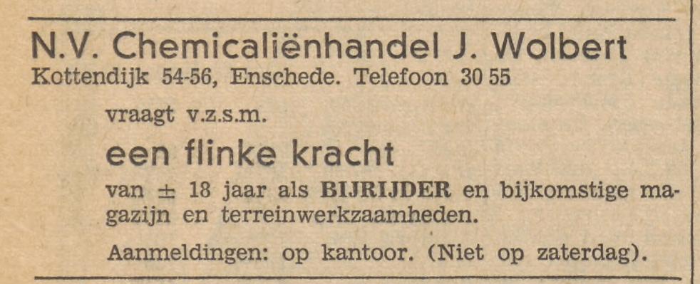 3055 Wolbert, J. Chemicaliën en verfstoffen. Kottendijk 54.