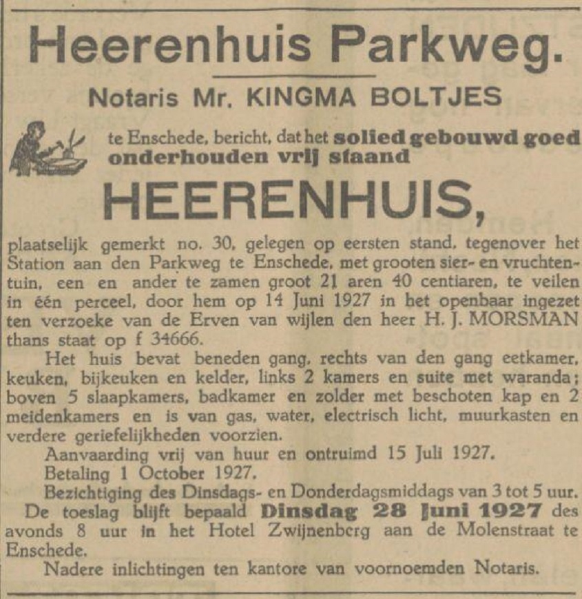 Morsman, H.J., Fabrikant, Parkweg 30.