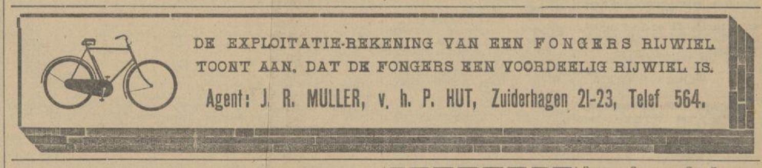 Muller, J.R., voorheen P. Hut, Fongers Rijwielen, Zuiderhagen 23.