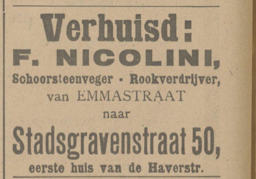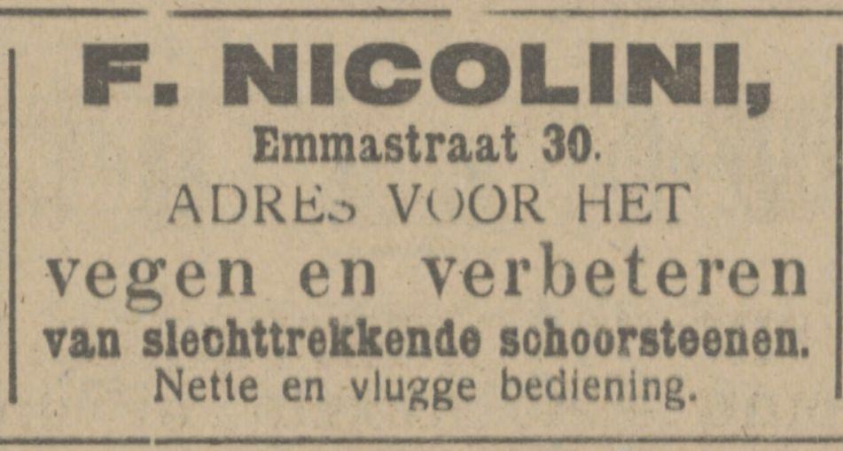 Nicolini, F., Schoorsteenveger, Emmastraat 30.