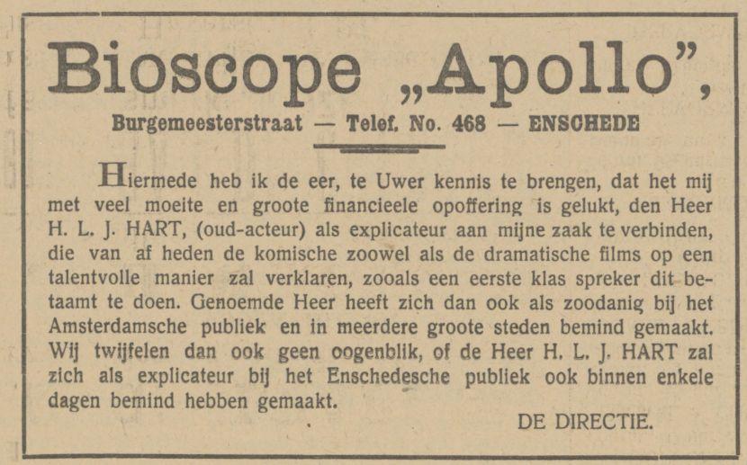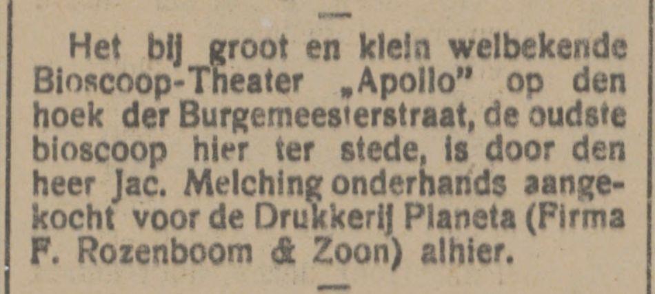Nienhuis Jzn. D., Bioscope "Apollo", Burgemeesterstraat.