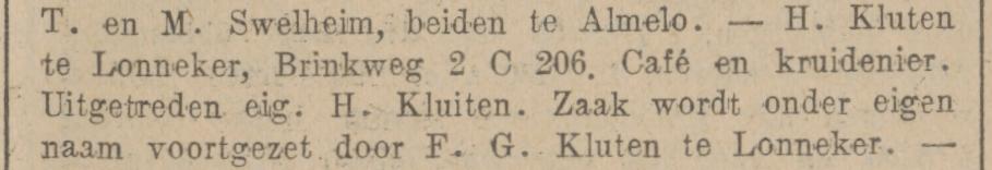 Aan de Brinkweg (later Brinkstraat) was zowel cafe Lueksen en cafe Kluten. zie bijgaand krantenbericht van 11-2-1925.