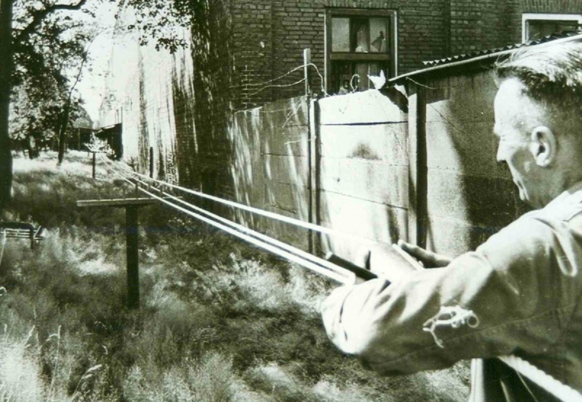 Hengelosestraat 56 Touwslager G.P. Nico Berendsen bij zijn bedrijf aan het werk 1960(2).jpg