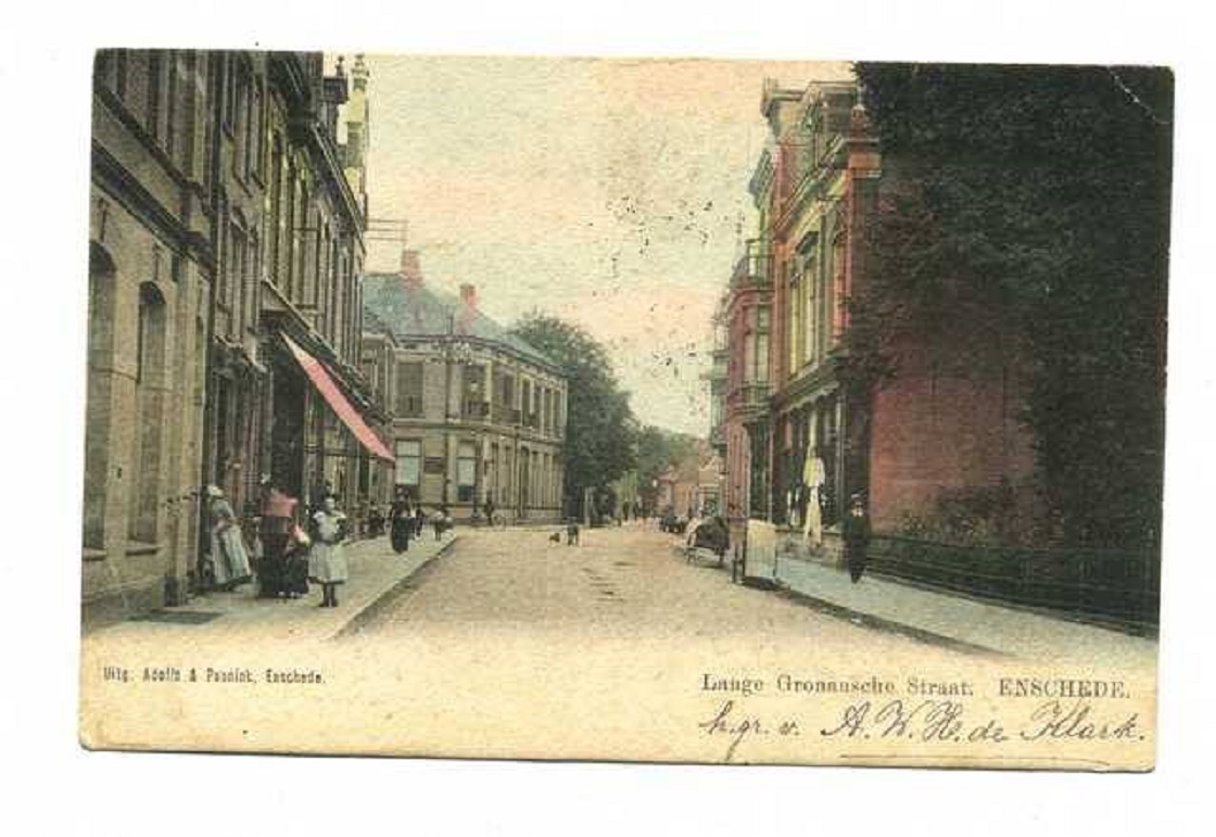 De gevel van het pand Langestraat 5 in 1904. Opvallend dat op deze ansichtkaart Lange Gronausche straat staat vemeld.