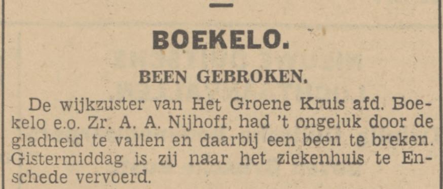 Boekelosestraat Groene Kruis wijkverpleegster A.A. Nijhof krantenbericht Tubantia 31-1-1940.jpg