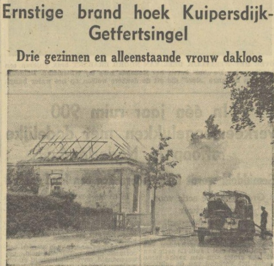 Kuipersdijk hoek Getfertsingel brand vm marechauseekazerne vroeger Walminkschool krantenfoto Tubantia 22-6-1950.jpg