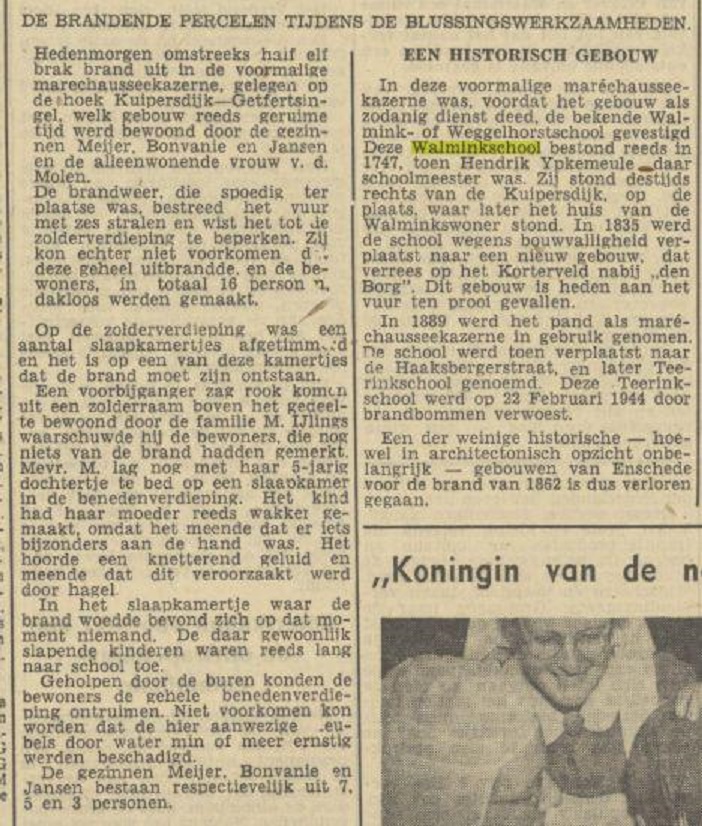 Kuipersdijk hoek Getfertsingel brand vm marechauseekazerne vroeger Walminkschool krantenbericht Tubantia 22-6-1950.jpg