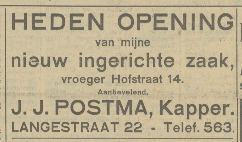Hofstraat 14 J. Postma coiffeur advertentie Tubantia 26-6-1926.jpg