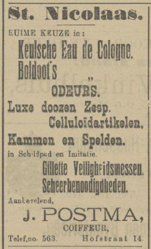 Hofstraat 14 J. Postma coiffeur advertentie Tubantia  1-12-1910.jpg