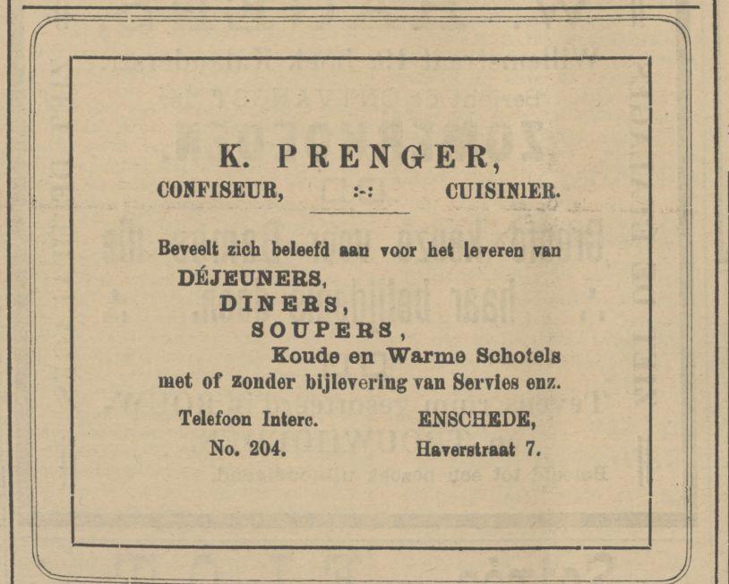 Prenger, K., Banketbakker en kok, Haverstraat 7.