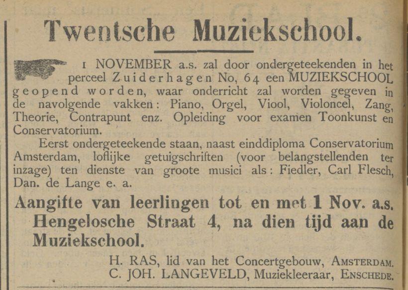 Ras & Joh. C. Langefeld, H., Twentsche Muziekschool, Lipperkerkstraat