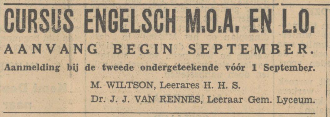 Dr. J.J. van Rennes Leeraar Gem. Lyceum advertentie Tubantia 21-7-1934.jpg